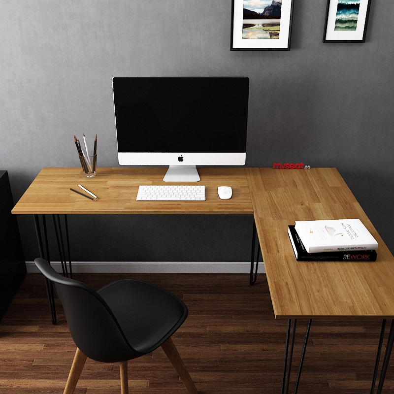 View Real Wood L Shaped Desk Images. This wooden desk is all finished in a rustic oak that shows wood grain texture, creating a warm and relaxed vibe in your workplace.read more. Custom build for boulder brands.